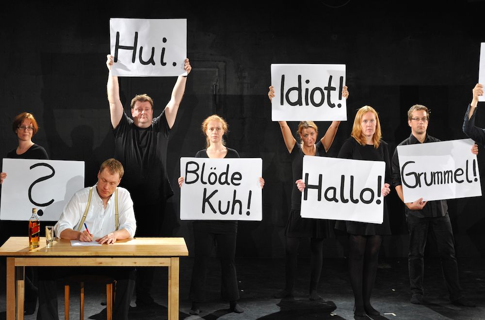 Mit diesen und anderen Fragen setzte sich der Aufbaukurs 7 Theaterpädagogik des Off Theater nrw in seiner Abschlussaufführung am 12. Oktober 2013 an der RüBühne in Essen auseinander. “B.“ hieß die Szenekollage zum Thema Begegnung, die der Kurs zum Abschluss der Ausbildung erarbeitet hatte. Ein buntes Programm, das die Möglich- und Unmöglichkeiten von Begegnungen auslotete.