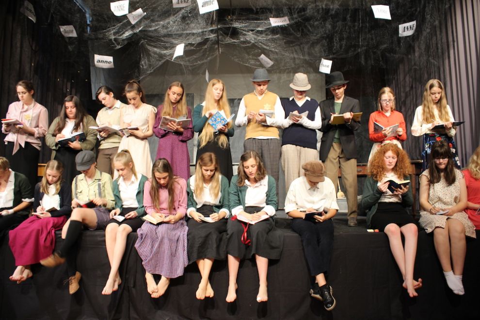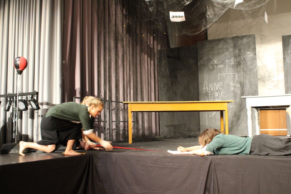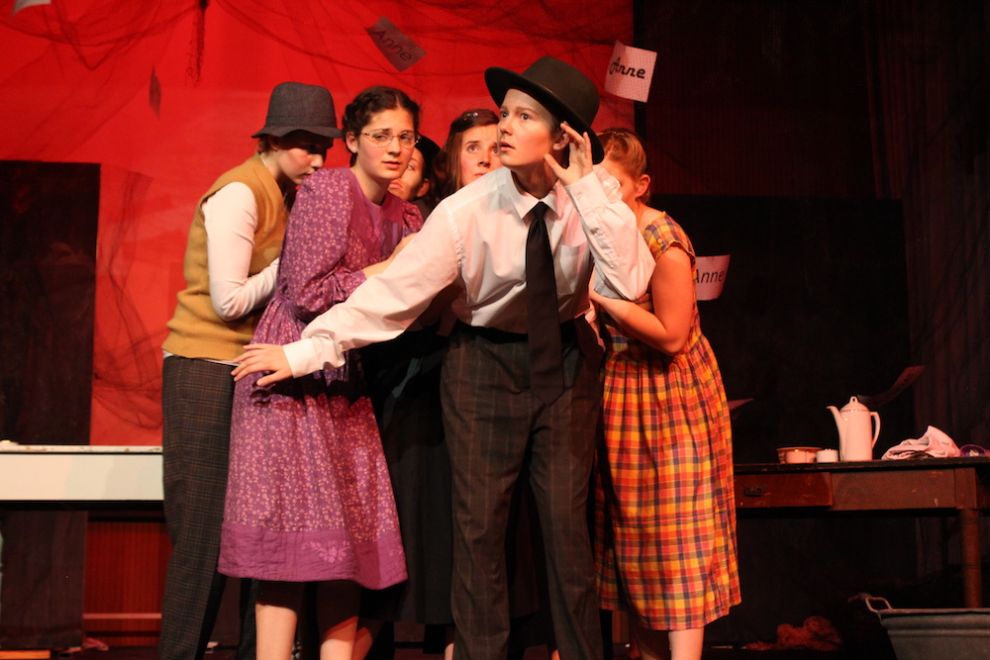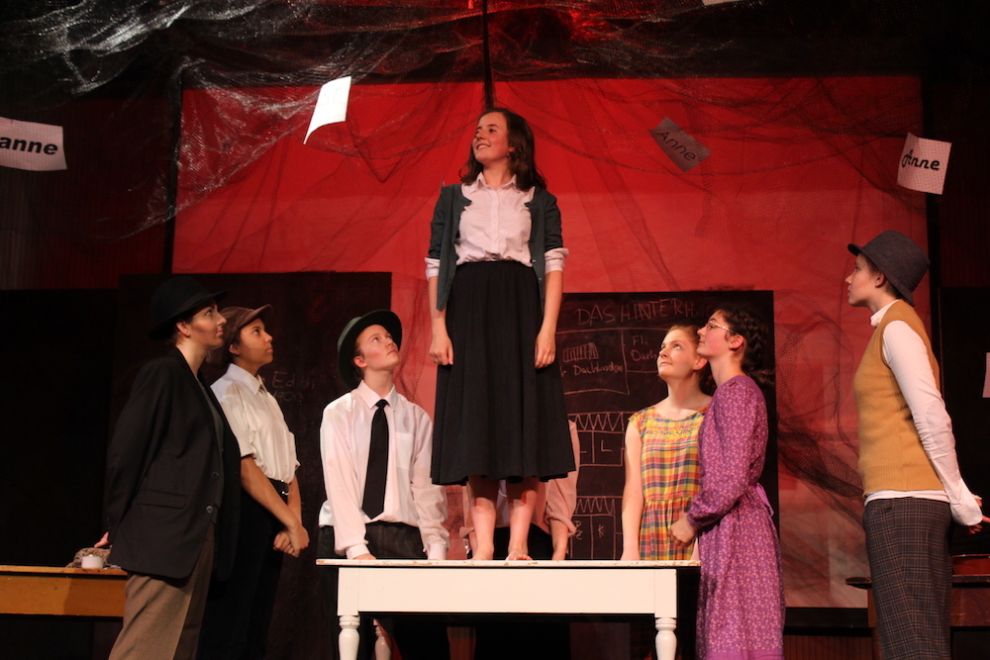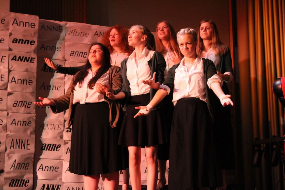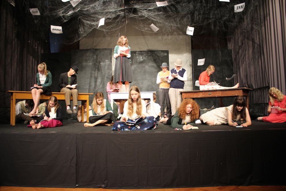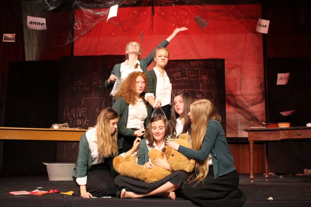 Die Theater-AG der Marienschule Limburg hat sich im Schuljahr 2015/2016 unter Leitung der Theaterpädagogin Cara Basquitt mit dem Leben der Anne Frank auseinandergesetzt und ist dabei den unterschiedlichsten Fragen nachgegangen: Wie wird man eigentlich erwachsen, wenn man nur wenige Quadratmeter zum Leben hat und sich diese auch noch mit sieben anderen Personen teilen muss? Welchen Einfluss hat das Leben im unmenschlichen nationalsozialistischen System auf die Entwicklung eines jungen Menschen? Was passiert mit dem jugendlichen Freiheitsdrang, wenn man eingesperrt ist? Kann man sich in einem Versteck verlieben? Wie viele Facetten stecken in Anne Frank? Die vier Aufführungen fanden im Juli 2016 in der Aula der Marienschule Limburg statt.